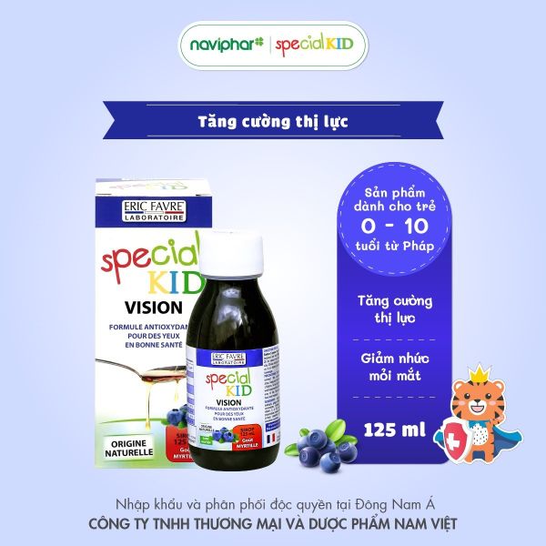 Với tiêu chuẩn chuẩn châu Âu, các nhà khoa học Pháp đã nghiên cứu và bào chế ra các công thức bổ mắt chuyên biệt cho trẻ. Một trong số đó là Thực phẩm bảo vệ sức khỏe SPECIAL KID VISION/SPECIAL KID BỔ MẮT.
